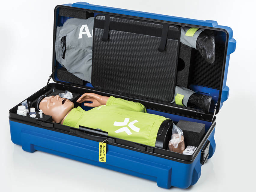 Profesionāls apmācības manekens, kas izstrādāts, lai apmierinātu visas uzlabotā dzīvības atbalsta (ALS) apmācības vajadzības. Manekena uzmanības centrā ir algoritms: elpceļu pārvaldība, EKG simulācija, defibrilācija un IV piekļuves tehnikas apmācība. Integrēta Ambu bezvadu tehnoloģija: pārlūkprogrammā bāzētais Ambu manekena pārvaldības modulis ļauj bezvadu režīmā vadīt, dokumentēt un uzraudzīt apmācāmā veiktspēju, izmantojot centrālo interfeisu, kur tiek apvienoti visi dati un informācija: saspiešanas dziļums, pareiza rokas pozīcija, ventilācijas apjoms, vēdera piepūšana. Pielāgota scenāriju apmācība: intuitīvais lietotāja interfeiss ļauj ātri un viegli izveidot pielāgotus scenārijus un pielāgot tos dažādām kursu koncepcijām atbilstoši instruktoru prasībām un pašreizējām ERC / AHA vadlīnijām. CPR parametri un manuālie notikumi tiek dokumentēti bezvadu režīmā un iekļauti novērtēšanā un pārskatā. Individuālais praktikantu vērtējums grupā: efektīvāka apmācība, katrs dalībnieks saņem savus personīgos rezultātus (līdz četriem dalībniekiem). Tehniskās specifikācijas. Ventilācija no mutes mutē: NAV. Ventilācija no mutes uz degunu: NAV. Ventilācija ar maisu-vārstu-masku: JĀ. Guedel elpceļa izmantošana: JĀ. Elpceļu vadība: ET caurule, balsenes caurule un maska un citi SGA: JĀ. Žokļa vilces manevrs: JĀ. Kuņģa insuflācija: JĀ. Ambu higiēnas sistēma: NAV. Krūškurvja saspiešana: JĀ. Maksimālais saspiešanas dziļums: 7 cm. Maksimālā insuflācija: 1,2 litri. Rokas stāvokļa displejs: JĀ. Bezpakāpju regulējams krūškurvja stīvums: JĀ. Impulss: elektrisks. Defibrilācijas elektrodu novietojums: JĀ. Defibrilācija: JĀ. I.V. piekļuve (nepieciešams IV trenažieris 34041): izvēles. Bezvadu CPR programmatūra: JĀ. EKG displejs: JĀ. AMBU maiss: JĀ. Svars: 13,3 kg.