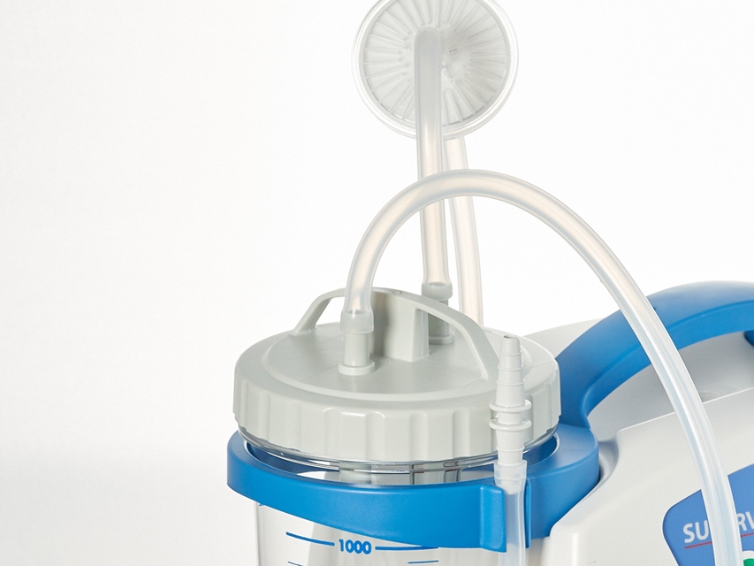 Iesūkšanas aspirators Super-Vega.Daļa no stilīgas, kompaktas un drošas aspiratoru līnijas, paredzētas mazajai ķirurģijai.Tām raksturīga klusā darbība, liela iesūkšanas plūsma un ierīce neprasa tehnisko apkalpošanu.Ieteicams deguna, mutes dobuma, trahejas un organisma šķidrumu aspirācijai (gļotas, katars vai asinis) pieaugušajiem un bērniem.Aprīkots ar vakuuma regulatoru, vakuuma indikatoru, nesaplēšamu pudeli 1000 ml, kas autoklavējama 121 °C, ar drošības kontroles pludiņu, lai novērstu pārplūšanu.Atsevišķa pudele autoklavējama 134 °C.Plastmasas korpuss nodrošina elektrisko un siltuma izolāciju.Papildus standarta pudelei tiek piegādāta vienreizlietojama savākšanas sistēma.Tā sastāv no cietas daudzreizlietojamas taras un vienreizlietojama polietilēna trauka ar vāciņu.Tas ir hermētisks, hidrofobs un nodrošina pretnoplūdes efektu.Bakteriālais filtrs darbojas kā pārplūdes vārsts.Tehniskie parametri.• Darba spriegums: 110 V - 60 Hz.• Patērējamā jauda: 106 W.• Pudeles tilpums: 1000 lm.• Gaisa patēriņš: 40 l/ min.• Maksimālais vakuums: -0,80 bāri (600 mm dzīvsudraba stabiņa).• Darba cikls: nepārtraukts.• Izmērs: 35 x 21 x 18 cm.• Svars: 3,6 kg.• Atbilst normām: 93 /42 /ECC.• Izgatavots Itālijā.