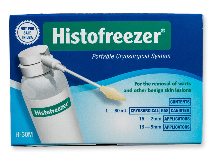 HISTOFREEZER MIX MINI.Pudele 80 ml + 16 aplikatori 2 mm, 16 aplikatori 5 mm.Pārnēsājamā krioķirurģiskā sistēma Histofreezer® ir zemu izmaksu, ļoti efektīvs krioķirurģijas līdzeklis, kas nodrošina drošu un efektīvu kārpu un citu bieži sastopamu labdabīgu ādas bojājumu ārstēšanu.PROFESIONĀLAI LIETOŠANAI.Šajā terapeitiskajā ārstēšanā izmanto lokālu sasaldēšanu, lai kontrolētu audu iznīcināšanu vai izņemšanu.Piemērots pieaugušajiem un bērniem.Efektīva lietošana 9 labdabīgu bojājumu veidiem un izārstēšanas procentiem.Verruca Vulgaris (parastās kārpas): 94%.Verruca Plantaris (plantārās kārpas): 86%.Molluscum Contagiosum: 100%.Lentigo (vecuma plankumi): 100% sejas / 99% ārpus sejas.Kondiloma (dzimumorgānu kārpas): 89%.Seborejiskā keratoze: 95%.Akrohordons (ādas etiķetes): 100%.Verruca Plana (plakanās kārpas): 93%.Aktīniskā keratoze (sejas un ārpus sejas): sejas 91% / ārpus sejas 87%.Piesātinātie 2 mm aplikatori paliks auksti 90 sekundes.Piesātinātie 5 mm aplikatori paliks auksti 120 sekundes.Šajā komplektā ietilpst viena 80 ml aerosola pudele, 16 aplikatori 2 mm un 16 aplikatori 5 mm.Komplektā ar kastīti un rokasgrāmatu: GB, FR, IT, DE, ES, NL, PL.No tīmekļa varat lejupielādēt: GR, PT, TH, Arab.