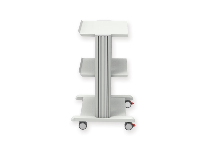 SMART CART - 2 shelves 40x36 cm + baseSturdy carts with painted powder steel base and aluminium frame. 2 shelves with protection edge on back, adjustable at different height.Suitable for all Gima electrosurgical units.Illustrated assembly instructions.First shelf can be mounted flat or tilted ± 10°4 twinned pivoting castors (2 with brake) Ø 65 mm made of thermoplastic rubber and ABS.Made in Italy.