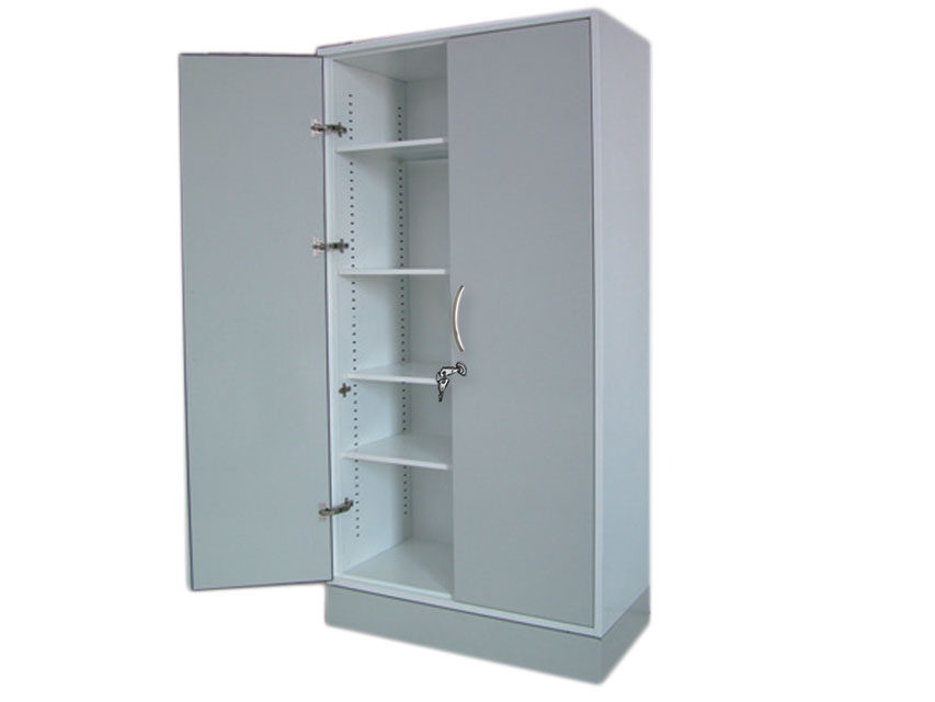 Epoksīda pulverkrāsots tērauda skapis ar 4 regulējamiem plauktiem, slēdzamām durvīm un 4 regulējamām pēdām.Izmērs: 100 x 50 xh 200 cm.Izgatavots Itālijā.
