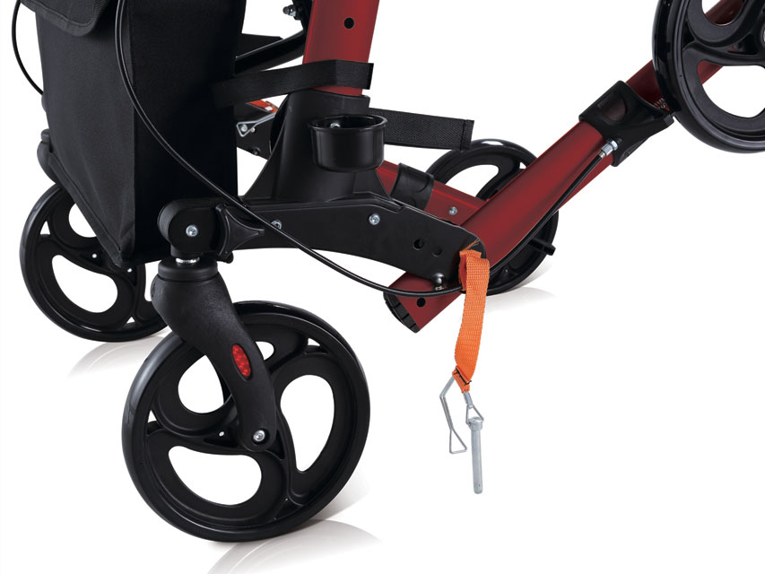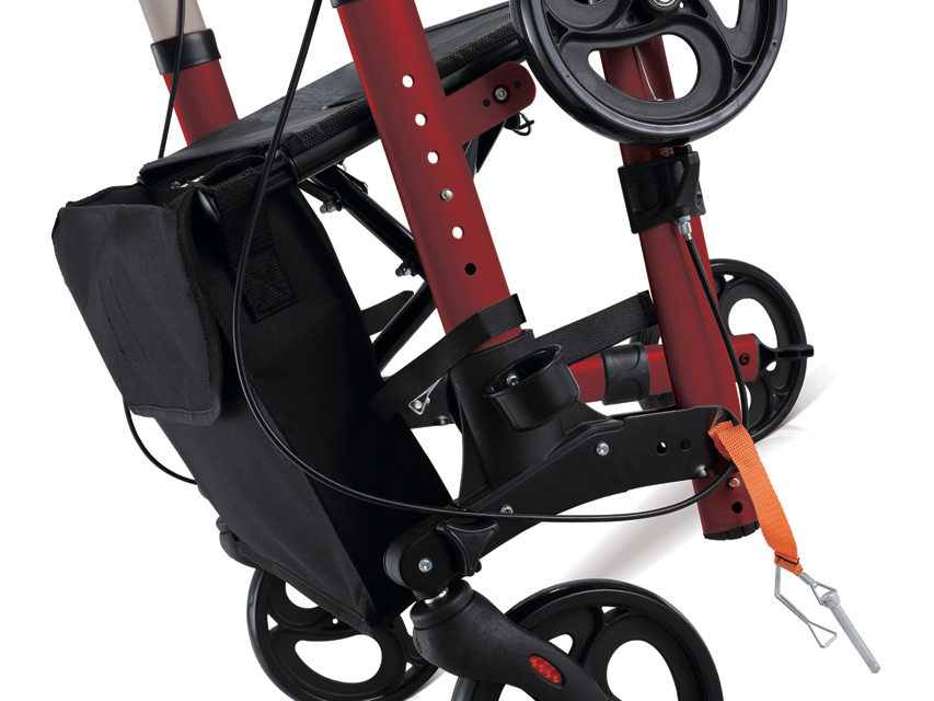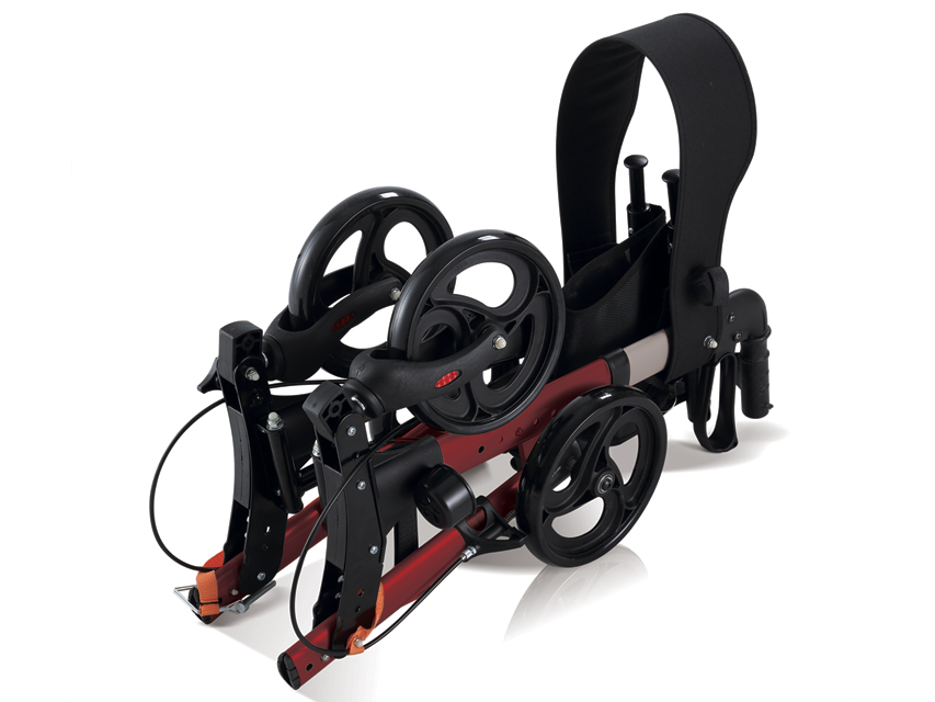 KOMPAKTS ROLLĀTORSViegls sarkans alumīnija rāmis, sieta auduma sēdeklis ar uzvelkamu siksnu.Ergonomisks rokturis un cilpas bremzes lielākai drošībai.Spieķu turētājs.Divi priekšējie grozāmi un salokāmi riteņi, divas aizmugurējās kājas salokāmas uz augšu, lai iegūtu ļoti kompaktu salocītu izmēru.Izmērs: 64 x 66,5 cm.Iepakojuma izmērs: 66 x 29 x 37 cm.Spiedpogas augstuma regulēšana uz rokturiem 79,5-93 cm.Sēdeklis 46 x 25 cm 54 cm augstumā.Svars: 8,1 kgSlodze: 136 kgPVC riteņi Ø 20 cm (8).Daudzvalodu rokasgrāmata: GB, FR, IT, ES.