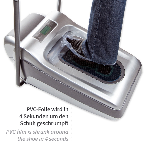 profesionāla mašīna lielam apmeklētāju skaitam, PE folija pārklāj apavu tikai 4 sekundēs, pašreizējā darbība, piemērota jebkura veida un izmēra apaviem (arī augstpapēžu), ļoti stabila, plīstoša folija aptuveni 1800 apaviem Â- piemērota sausām un ne pārāk gludām grīdām.