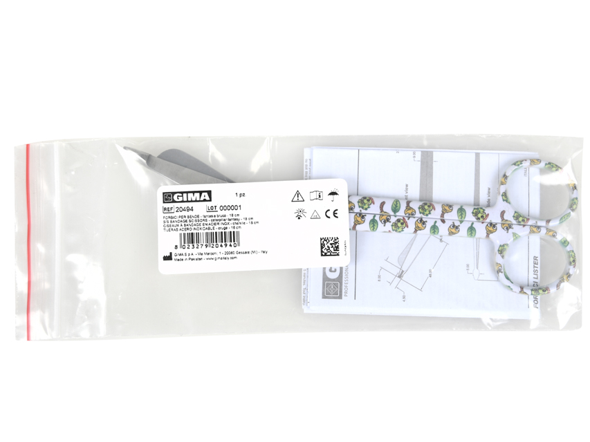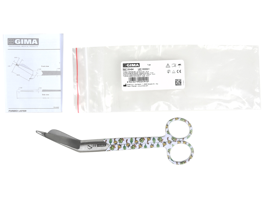 Nerūsējošā tērauda māsu pārsēju šķēres. 18 cm. Modelis: Burbuļi. Pulverkrāsoti instrumenti nav autoklāvējami, var sterilizēt ūdenī līdz 110°C.
