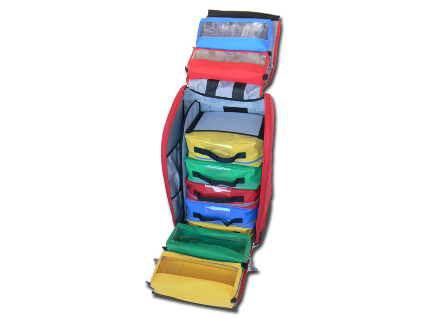 Neatliekamās medicīniskās palīdzības mugursoma - poliesters.Modulāra lielā mugursoma ar nodaļām, ar 8 iekšējām somiņām, pieejama 4 krāsās ar rokturi (modelis E5) un pieejama 4 krāsās ar caurspīdīgu logu (modelis E2).Iekšējie Velcro sloksņu maisiņi priekš nostiprināšanas.Ar dubultām dzeltenām atstarojošām lentēm.Izmērs: 40 x 30 x h 57 cm.
