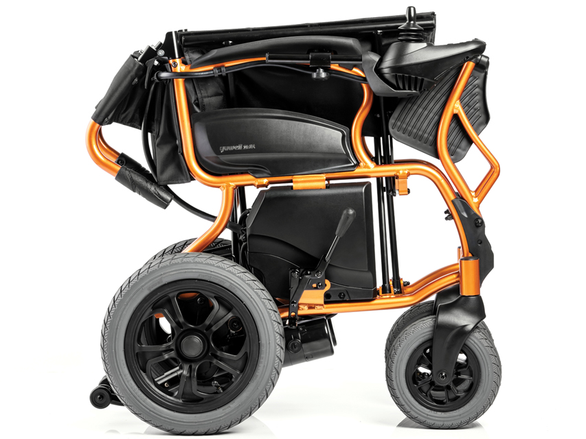 ELEKTRISKAIS RATINKRĒSLS - salokāmsElektriskais ratiņkrēsls, ikdienas lietošanai iekštelpās un ārā.To var izmantot elektriskā vai manuālā režīmā, lai viegli pārslēgtu sajūgu.Lietotājs var pārvietot ratiņkrēslu uz priekšu, atpakaļ vai apgriezties, izmantojot viedo kontrolieri, kas ir komplektā ar kursorsviru, lai kontrolētu ātrumu un virzienu.Tas ir aprīkots ar alumīnija sakausējuma rāmi, roku balstu, kāju balstu, paplašināmu roku balstu un elastīgu triecienizturīgu balstiekārtu.Noņemami sēdekļa un atzveltnes spilveni, akumulators un tālvadības pults.Ērta braukšana ar ergonomisku dizainu, kas mazina nogurumu.Jaudīgs: efektīvs enerģijas taupīšanas motors- augstas precizitātes ātrumkārba- ātra un stabila iedarbināšana. 5 ātruma iestatījumi.Trīskārša aizsardzība: elektromagnētiskā bremžu un pārnesumu pašbloķēšanās aizsardzība.Stilīgs modelis: gluds viegls dizains, ko raksturo dinamiska aizsargplāksne, sadalīts fiksēts sēdeklis un patentēts loka formas kāju balsts.Atzveltnes salocīšanas mehānisms.Komplektā ar litija akumulatoru un lādētāju.Tehniskās specifikācijasKravnesība: =100 kgIzturīgs nobraukums: =20 kmMaksimālais ātrums: =6 km/hAkumulators: litija akumulators, DC 24V x 18Ah Motorajauda: 130 WEnerģijas patēriņš: =2,5 kw xh/100 kmHorizontālās bremžu veiktspēja: =1,5 mMaksimālā drošā rampas bremze: =3,6 m (6°)Stabilitāte: =9° (statiskā), =6° (dinamiskā)Troksnis: < 65 dBŠķēršļu šķērsošanas augstums: =40 mmMinimālais pagrieziena rādiuss: 1,2 mRievas klīrensa platums: 100 mmKalna turēšanas veiktspēja: 9°Izmērs: 615 mm (atvērts), 370 mm (aizvērts)Sēdekļa platums: 430 mmNeto svars: 26 kgAizsardzība: IPX4