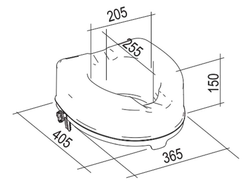 Paaugstināts tualetes sēdeklis ar sānu fiksācijas sistēmu.Augstums: 15 cm.Maksimālā slodze: 225 Kg.Iepakojums: 373 x 165 x 410 mm.Norādījumi: GB, IT, FR, ES, DE, GR.Ražots Itālijā.