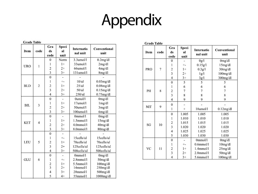 GIMA URĪNA ANALIZATORS.Gima urīna analizators ir augstas precizitātes instruments ar progresīvām tehnoloģijām urīna klīniskai pārbaudei.Tas piedāvā vienkāršu un ātru darbību, precīzus rezultātus un labu atkārtojamību.Funkcijas.- augsta spilgtuma, balts LE D, ilgs kalpošanas laiks un laba stabilitāte.- liels LCD displejs.- lietotājam draudzīgs interfeiss.- visa testēšanas procesa uzraudzība un skaņas vadības uzvedne.- datu pārraides funkcija.Pielietojums.- ērta aprūpes punkta pārbaude ārstam.- hronisku slimību un ilgstoša nefrotisku pacientu uzraudzība.- veselības pārbaude.- izmantošana kā telemedicīnas terminālis.Pārbaudīti parametri.Glikoze (GLU), bilirubīns (BIL), īpatnējais svars (SG), PH, ketona ķermenis (KET), slēptās asinis (BLD), olbaltumvielas (PRO), urobilinogēns (URO), nitrīts (NIT), leikocīti (LEU), Askorbīnskābe (VC).Var lietot ar urīna analīzes sloksnēm 24076.Daudzvalodu rokasgrāmata un kaste: GB, FR, IT, ES.Pārbaudiet papīra paliktni aizmugurē, lai novietotu pārbaudāmo sloksni.5 taustiņu skārienvadības tastatūra.Tehniskās specifikācijas.Darba režīms: One-sep.Iekšējā valoda: itāļu un angļu.Displejs: 2,4 LCD, izšķirtspēja: 320x240.Datu glabāšana: 500 datu paraugi.Princips: R GB trīskrāsu testa teorija.Sakaru interfeiss: Micro USB interfeiss, Bluetooth bezvadu sakari.Atkārtojamība: CV =1%.Stabilitāte: CV =1%.Ierakstīšanas režīms: L CD displejs, zibatmiņas ROM datu krātuve.Barošanas avots: Iebūvēts uzlādējams litija akumulators 3,7 V, 1900 mAh.Vadošais dators: DC 5 V, 1 A.A adapteris: AC 100-240 V, 50/60 Hz.Pārbaudes diapazons: Skatiet pakāpju tabulu vietnē www.gimaitaly.com.Izmēri - Svars: 126x73,5xh 30 mm - 0,18 kg.